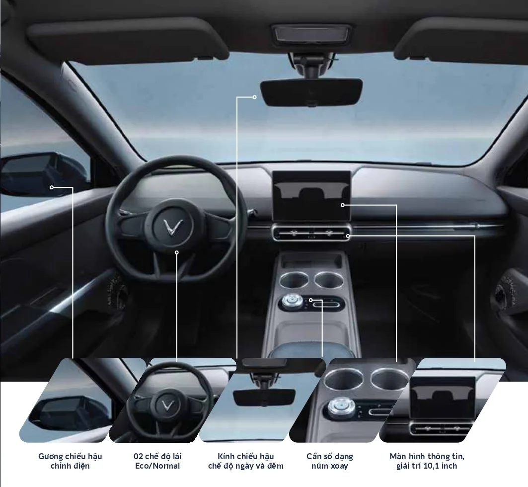 Theo đó, các phím bấm vật lý và chi tiết thừa đã được lược bỏ đến mức tối đa. Khu vực táp-lô thoáng đãng với 1 màn hình trung tâm dạng cảm ứng, đặt nổi, kích thước 10,1 inch. Ngay phía dưới bố trí cửa gió điều hòa dạng nằm ngang, viền kim loại xung quanh. Tiếp đến là bảng điều khiển trung tâm tích hợp núm xoay chuyển số, 2 khay đựng ly và giá để điện thoại.