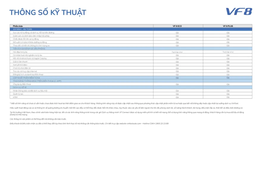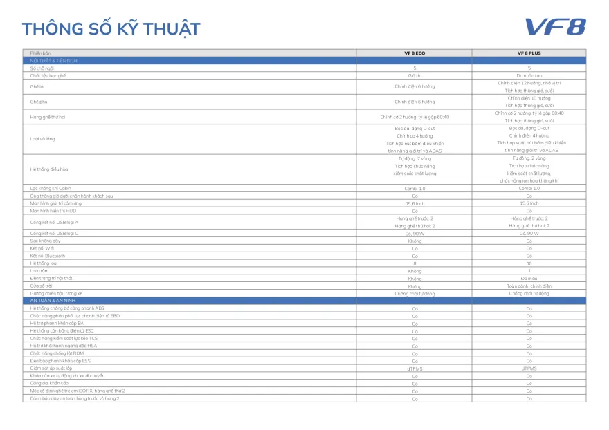 Vinfast VF8 Eco +Pin (Nâng Cấp): 1.069.000.000 đ