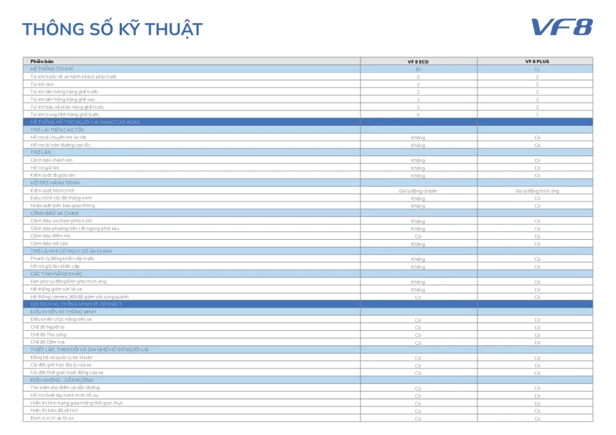 Thương hiệu Việt kỳ vọng rằng với danh sách an toàn và công nghệ hỗ trợ lái tiên tiến mà VF8 đang sở hữu. Mẫu SUV này sẽ có thể đạt tiêu chuẩn 5 sao ASEAN NCAP, 5 sao EURO NCAP và 5 sao NHTSA.