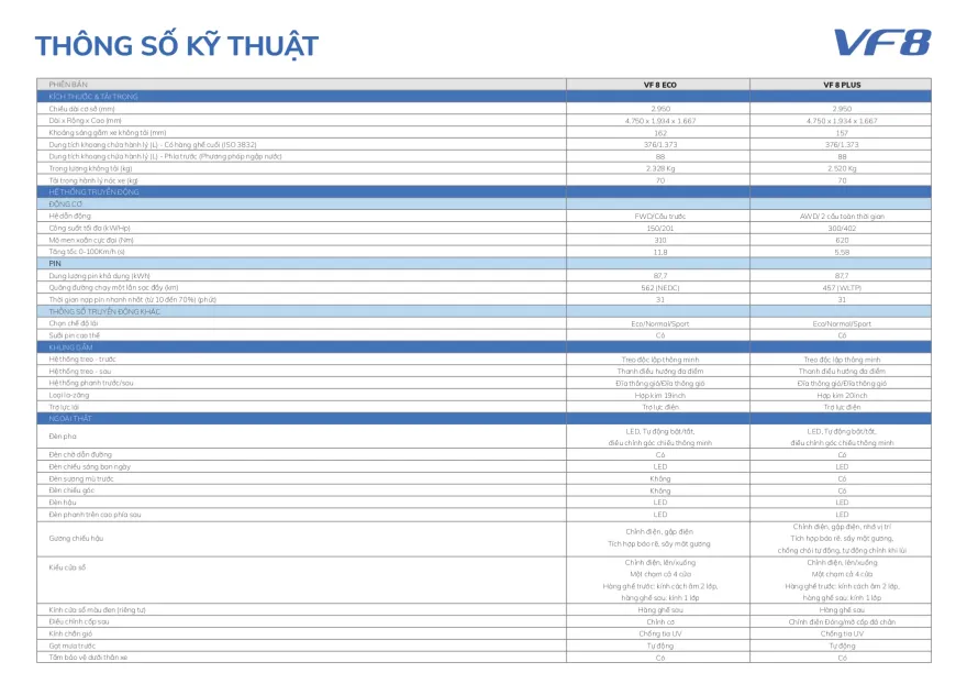 Vinfast VF8 Eco +Pin: 1.019.000.000 đ
